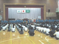 駅伝大会を明日に控え、参加する選手に生徒全員でエールを送るため、壮行会を行いました。男女それぞれの代表選手から決意表明があり、チームとして全力を尽くして走り抜く意思を強く感じました。ひとつでも上の順位を、そして少しでも満足のいく結果が出せるよう、頑張ってきてください。
