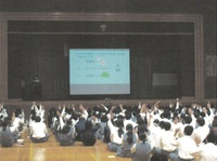 この日は、10月24日に実施された合唱コンクール等の表彰及び学級委員会の防災に関する発表を行いました。表彰状やトロフィーを受け取った実行委員の表情には、充実感が見られました。また、学級委員会の発表は、自分たちでもできる防災セットの作成など、工夫を凝らした素晴らしい発表でした。