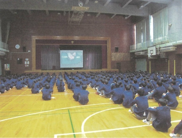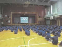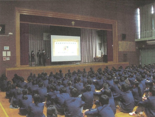 1月最終週は「給食週間」です。生徒会朝礼では、給食委員会の生徒が学年ごとに工夫を凝らした発表を行いました。特に「残食を少なくするための提言」を行い、実際に食べている生徒目線からの意見が述べられました。また、食についてのクイズもあり、食について楽しく学ぶことができました。