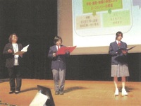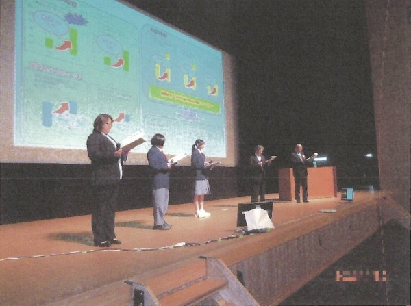 大宮のレイボック・ホールで行われた「さいたま市コミュニティ・スクールシンポジウム」に生徒2名をはじめ、校長と保護者代表、地域代表の方が参加し、防災教育に関する地域との取組を発表しました。主催したさいたま市教育委員会の担当の方から「素晴らしかったです」とお褒めの言葉をいただきました。
