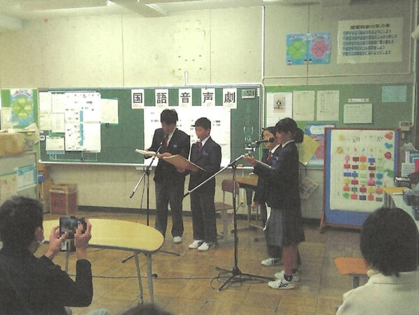 6組では、これまで国語の授業で取り組んできたことを踏まえ、音声劇を実施しました。当日はたくさんの保護者の皆さんと教員が参観しました。発表した生徒は、表現力豊かに台本を読み、とても上手に演じていました。素晴らしい発表でした。