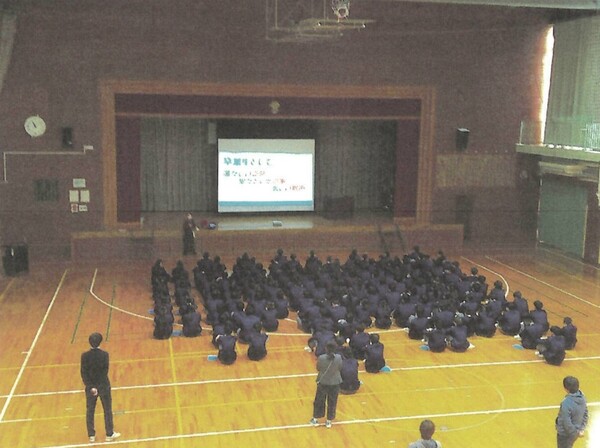 公立高校の試験も終了し、3年生はいよいよ卒業に向けて式練習が始まりました。初めの時間は学年主任の先生から心構えを聞き、椅子の準備や並び順を確認しました。次の時間は歌の練習を行い、3年生も卒業に向けての意識も高まってきたと思います。